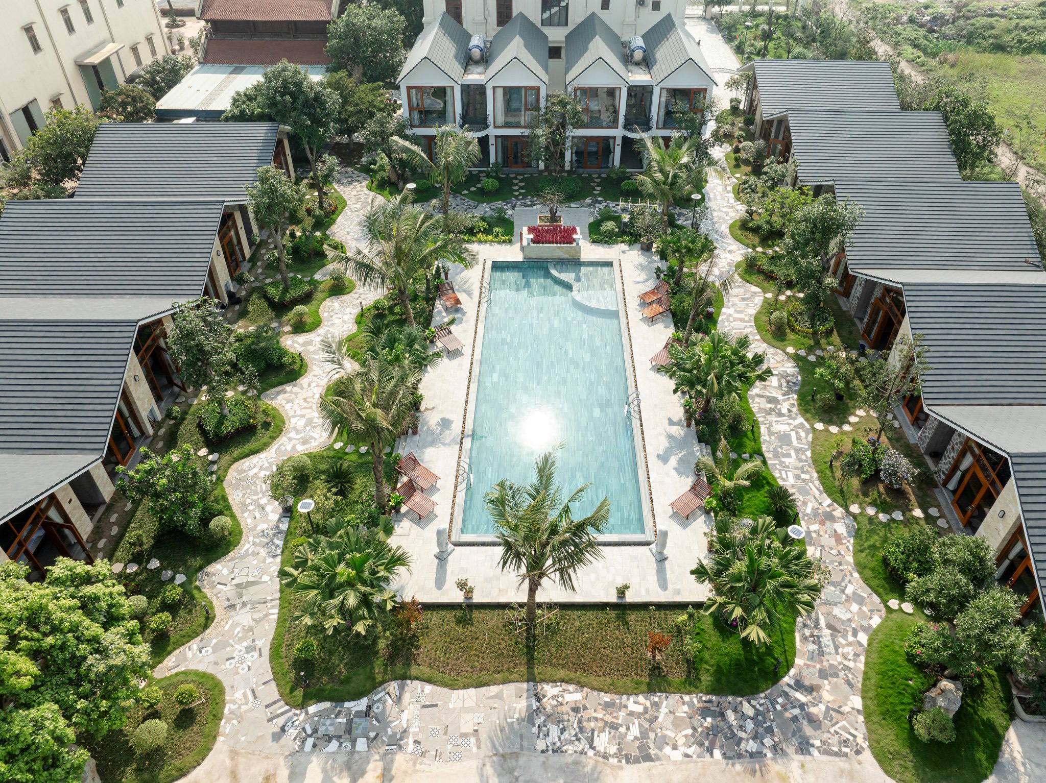 Hồ bơi rộng rộng đến 180m2 với độ dốc nước sâu từ 1,00m đến 1,50m (có khu vực riêng cho các bạn nhỏ) an toàn cho trẻ nhỏ. Chiều dài bể lên tới 25m cùng với chiều ngang bể 7m, phù hợp cho mọi hoat động thể thao của quý khách. Hứa hẹn sẽ đem lại cho Quý Khách những phút giấy nghỉ ngơi thoải mái nhất
