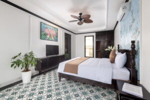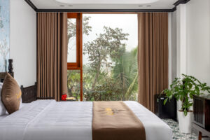 Với diện tích 25m2 không gian phòng được thiết kế ấn tượng với hơi hướng phong cách Inochine cổ điển pha lẫn với những trang thiết bị hiện đại . Tiện nghi đầy đủ kết hợp cùng nội thất gỗ sang trọng mang lại cho quý khách cảm giác thoải mái nhất khi nghỉ dưỡng tại nơi đây. Cửa kính lớn giúp quý khách phóng tầm mắt về phía bể bơi trung tâm khu nghỉ dưỡng một cách thoải mái nhất.